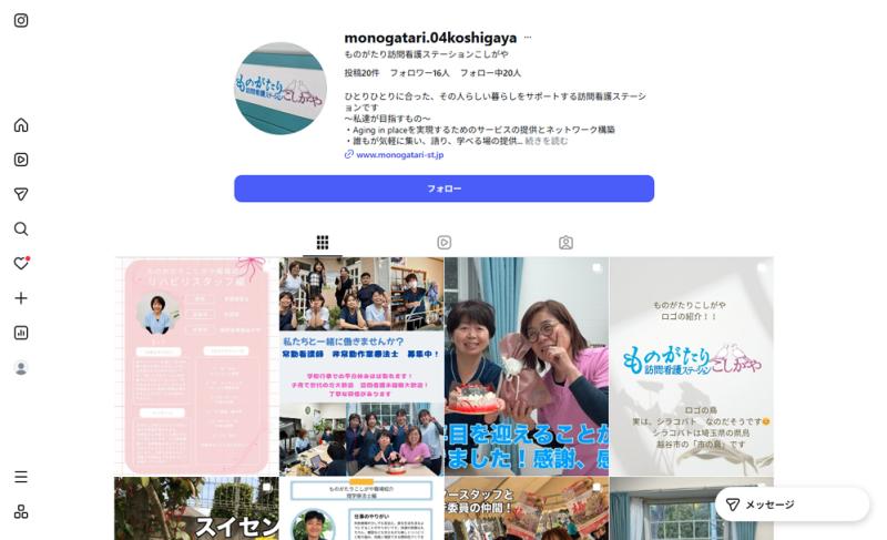 ものがたり訪問看護ステーションこしがや公式インスタグラム・Instagram更新中♪